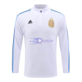 Sudadera de Entrenamiento Argentina Blanco 2024> Corte clásico.> Tejido ligero, tacto sedoso, con efecto secado rápido y ligeramente elástico.> El ajuste estándar sigue su cuerpo con espacio adicional para la movilidad.> No se preocupe por la claridad de los logotipos de los clubs, marcas, nombres de los patrocinadores en las fotos de c..