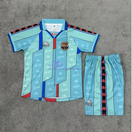 Camiseta Barcelona 1996/97 Segunda Equipación Retro Niño Kit> Corte clásico.> El conjunto incluye camiseta y pantalón corto.> Pantalón corto con cintura elástica.> Tejido ligero, tacto sedoso, con efecto secado rápido y ligeramente elástico.> No se preocupe por la claridad de los logotipos de los clubs, marcas, nombres de los patroci..