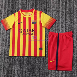 Camiseta Barcelona 13/14 Segunda Equipación Retro Niño Kit> Corte clásico.> El conjunto incluye camiseta y pantalón corto.> Pantalón corto con cintura elástica.> Tejido ligero, tacto sedoso, con efecto secado rápido y ligeramente elástico.> No se preocupe por la claridad de los logotipos de los clubs, marcas, nombres de los patrocina..