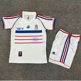 Camiseta Francia 1998 Segunda Equipación Retro Niño Kit> Corte clásico.> El conjunto incluye camiseta y pantalón corto.> Pantalón corto con cintura elástica.> Tejido ligero, tacto sedoso, con efecto secado rápido y ligeramente elástico.> No se preocupe por la claridad de los logotipos de los clubs, marcas, nombres de los patrocinador..