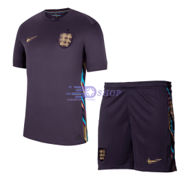 Segunda Equipación Inglaterra 2024 Niño Kit> Corte clásico.> El conjunto incluye camiseta y pantalón corto.> Pantalón corto con cintura elástica.> Tejido ligero, tacto sedoso, con efecto secado rápido y ligeramente elástico.> No se preocupe por la claridad de los logotipos de los clubs, marcas, nombres de los patrocinadores en l..