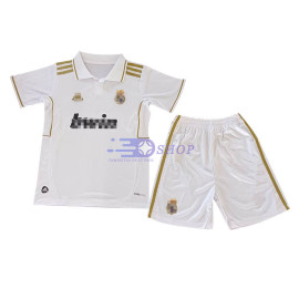 Camiseta Real Madrid 11/12 Primera Equipación Retro Niño Kit> Corte clásico.> El conjunto incluye camiseta y pantalón corto.> Pantalón corto con cintura elástica.> Tejido ligero, tacto sedoso, con efecto secado rápido y ligeramente elástico.> No se preocupe por la claridad de los logotipos de los clubs, marcas, nombres de los patroci..