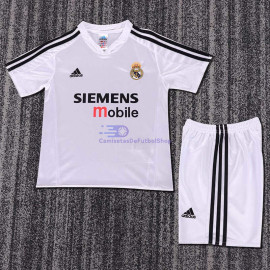 Camiseta Real Madrid 2004/05 Primera Equipación Retro Niño Kit> Corte clásico.> El conjunto incluye camiseta y pantalón corto.> Pantalón corto con cintura elástica.> Tejido ligero, tacto sedoso, con efecto secado rápido y ligeramente elástico.> No se preocupe por la claridad de los logotipos de los clubs, marcas, nombres de los patro..