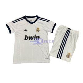 Camiseta Real Madrid 2012/13 Primera Equipación Retro Niño Kit> Corte clásico.> El conjunto incluye camiseta y pantalón corto.> Pantalón corto con cintura elástica.> Tejido ligero, tacto sedoso, con efecto secado rápido y ligeramente elástico.> No se preocupe por la claridad de los logotipos de los clubs, marcas, nombres de los patro..