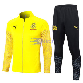 Chandal Borussia Dortmund Amarillo 2023/2024> Corte clásico.> Incluye chaqueta y pantalón largo.> Pantalón largo con cintura elástica.> Tejido ligero, tacto sedoso, con efecto secado rápido y ligeramente elástico.> No se preocupe por la claridad de los logotipos de los clubs, marcas, nombres de los patrocinadores en las fotos de cami..