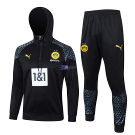 Chandal Con Capucha Borussia Dortmund Negro 2024/2025> Corte clásico.> Incluye chaqueta y pantalón largo.> Pantalón largo con cintura elástica.> Tejido ligero, tacto sedoso, con efecto secado rápido y ligeramente elástico.> No se preocupe por la claridad de los logotipos de los clubs, marcas, nombres de los patrocinadores en las foto..