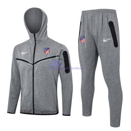 Chandal Con Capucha Atlético de Madrid Gris Oscuro 2024/2025 (El Escudo Anterior)> Corte clásico.> Incluye chaqueta y pantalón largo.> Pantalón largo con cintura elástica.> Tejido ligero, tacto sedoso, con efecto secado rápido y ligeramente elástico.> No se preocupe por la claridad de los logotipos de los clubs, marcas, nombres de lo..