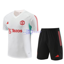 Camiseta de Entrenamiento Manchester United Blanco 2023/2024 Kit> Corte clásico.> El conjunto incluye camiseta y pantalón corto.> Pantalón corto con cintura elástica.> Tejido ligero, tacto sedoso, con efecto secado rápido y ligeramente elástico.> No se preocupe por la claridad de los logotipos de los clubs, marcas, nombres de los pat..