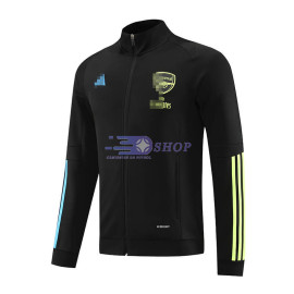 Chaqueta Arsenal Negro 2023/2024> Corte clásico.> Tejido ligero, tacto sedoso, con efecto secado rápido y ligeramente elástico.> El ajuste estándar sigue su cuerpo con espacio adicional para la movilidad.> No se preocupe por la claridad de los logotipos de los clubs, marcas, nombres de los patrocinadores en las fotos de camisetas, obten..