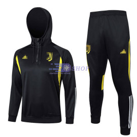 Sudadera de Entrenamiento Con Capucha Juventus Negro 2023/2024 Kit> Corte clásico.> Incluye sudadera y pantalón largo.> Pantalón largo con cintura elástica.> Tejido ligero, tacto sedoso, con efecto secado rápido y ligeramente elástico.> No se preocupe por la claridad de los logotipos de los clubs, marcas, nombres de los patrocinadore..