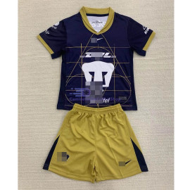 Camiseta Pumas UNAM 2024/2025 Segunda Equipación Niño Kit> Corte clásico.> El conjunto incluye camiseta y pantalón corto.> Pantalón corto con cintura elástica.> Tejido ligero, tacto sedoso, con efecto secado rápido y ligeramente elástico.> No se preocupe por la claridad de los logotipos de los clubs, marcas, nombres de los patrocinad..