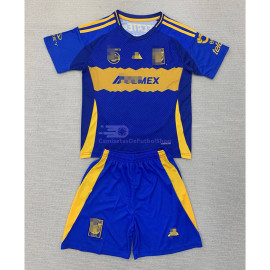 Camiseta Tigres UANL 2024/2025 Segunda Equipación Niño Kit> Corte clásico.> El conjunto incluye camiseta y pantalón corto.> Pantalón corto con cintura elástica.> Tejido ligero, tacto sedoso, con efecto secado rápido y ligeramente elástico.> No se preocupe por la claridad de los logotipos de los clubs, marcas, nombres de los patrocina..