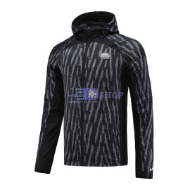 CortavientosCon Capucha Club America Negro 2023/2024> Corte clásico.> Tejido ligero, tacto sedoso, con efecto secado rápido y ligeramente elástico.> El ajuste estándar sigue su cuerpo con espacio adicional para la movilidad.> No se preocupe por la claridad de los logotipos de los clubs, marcas, nombres de los patrocinadores en las..