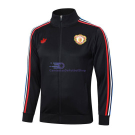 Chaqueta Manchester United 2025/2026 Retro Negro> Corte clásico.> Tejido ligero, tacto sedoso, con efecto secado rápido y ligeramente elástico.> El ajuste estándar sigue su cuerpo con espacio adicional para la movilidad.> No se preocupe por la claridad de los logotipos de los clubs, marcas, nombres de los patrocinadores en las fotos de ..