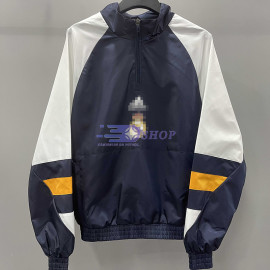 Cortavientos Real Madrid Azul Marino/Blanco 2023/2024> Corte clásico.> Tejido ligero, tacto sedoso, con efecto secado rápido y ligeramente elástico.> El ajuste estándar sigue su cuerpo con espacio adicional para la movilidad.> No se preocupe por la claridad de los logotipos de los clubs, marcas, nombres de los patrocinadores en las foto..