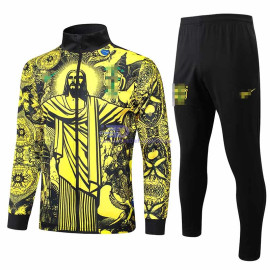 Chandal Brasil Amarillo/Negro 2024> Corte clásico.> Incluye chaqueta y pantalón largo.> Pantalón largo con cintura elástica.> Tejido ligero, tacto sedoso, con efecto secado rápido y ligeramente elástico.> No se preocupe por la claridad de los logotipos de los clubs, marcas, nombres de los patrocinadores en las fotos de camisetas, obt..