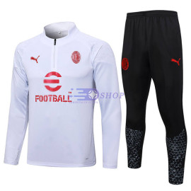 Sudadera De Entrenamiento AC Milan Blanco 2023/2024 Niño Kit> Corte clásico.> Incluye sudadera y pantalón largo.> Pantalón largo con cintura elástica.> Tejido ligero, tacto sedoso, con efecto secado rápido y ligeramente elástico.> No se preocupe por la claridad de los logotipos de los clubs, marcas, nombres de los patrocinadores en l..