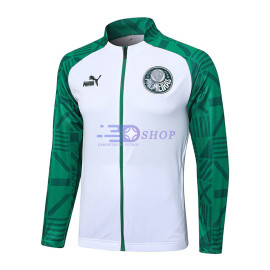 Chaqueta Palmeiras Blanco/Verde 2023/2024> Corte clásico.> Tejido ligero, tacto sedoso, con efecto secado rápido y ligeramente elástico.> El ajuste estándar sigue su cuerpo con espacio adicional para la movilidad.> No se preocupe por la claridad de los logotipos de los clubs, marcas, nombres de los patrocinadores en las fotos de camiset..