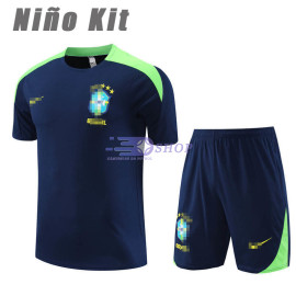 Camiseta de Entrenamiento Brasil Azul Marino/Verde 2023 Niño Kit> Corte clásico.> El conjunto incluye camiseta y pantalón corto.> Pantalón corto con cintura elástica.> Tejido ligero, tacto sedoso, con efecto secado rápido y ligeramente elástico.> No se preocupe por la claridad de los logotipos de los clubs, marcas, nombres de los pat..
