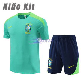 Camiseta de Entrenamiento Brasil Verde 2023 Niño Kit> Corte clásico.> El conjunto incluye camiseta y pantalón corto.> Pantalón corto con cintura elástica.> Tejido ligero, tacto sedoso, con efecto secado rápido y ligeramente elástico.> No se preocupe por la claridad de los logotipos de los clubs, marcas, nombres de los patrocinadores ..