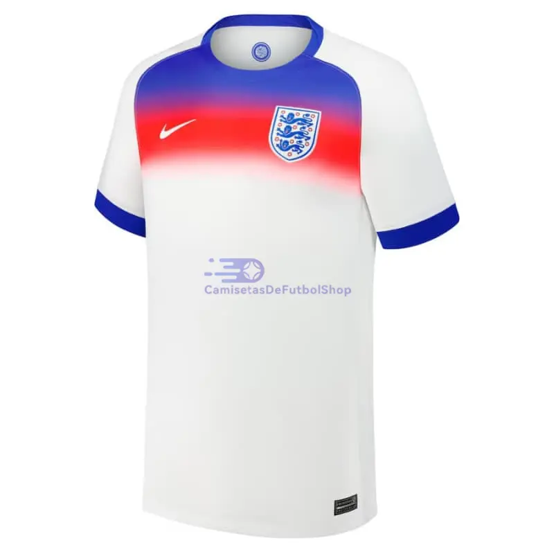 Camiseta Inglaterra 2023 Primera Equipación Copa Mundial Femenina> Corte clásico.> Tejido ligero, tacto sedoso, con efecto secado rápido y ligeramente elástico.> El ajuste estándar sigue su cuerpo con espacio adicional para la movilidad.> No se preocupe por la claridad de los logotipos de los clubs, marcas, nombres de los patrocinadores..