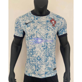 * La nueva camiseta Portugal Eurocopa 2024 local todavía tiene el clásico esquema de color burdeos, que refleja la bandera, la cultura y la larga historia del fútbol portugués. El diseño de la camiseta de visitante está estrechamente relacionado con la historia de Portugal. La camiseta utiliza una combinación de colores azul y blanco con un patrón de estilo Azulejo en toda su extensión.