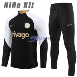 Sudadera de Entrenamiento Chelsea FC Negro/Blanco 2023/2024 Niño Kit> Corte clásico.> Incluye sudadera y pantalón largo.> Pantalón largo con cintura elástica.> Tejido ligero, tacto sedoso, con efecto secado rápido y ligeramente elástico.> No se preocupe por la claridad de los logotipos de los clubs, marcas, nombres de los patrocinado..
