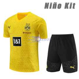 Camiseta de Entrenamiento Borussia Dortmund Amarillo 2023/2024 Niño Kit> Corte clásico.> El conjunto incluye camiseta y pantalón corto.> Pantalón corto con cintura elástica.> Tejido ligero, tacto sedoso, con efecto secado rápido y ligeramente elástico.> No se preocupe por la claridad de los logotipos de los clubs, marcas, nombres de ..