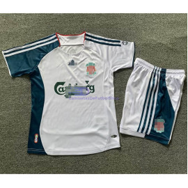Camiseta Liverpool 2006/07 Segunda Equipación Retro Niño Kit> Corte clásico.> El conjunto incluye camiseta y pantalón corto.> Pantalón corto con cintura elástica.> Tejido ligero, tacto sedoso, con efecto secado rápido y ligeramente elástico.> No se preocupe por la claridad de los logotipos de los clubs, marcas, nombres de los patroci..