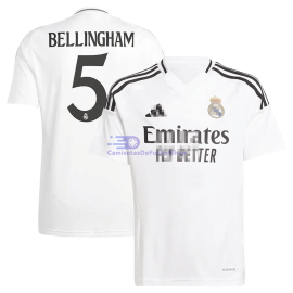 Camiseta Bellingham 5 Real Madrid 2024/2025 Primera Equipación> Corte clásico.> Tejido ligero, tacto sedoso, con efecto secado rápido y ligeramente elástico.> El ajuste estándar sigue su cuerpo con espacio adicional para la movilidad.> No se preocupe por la claridad de los logotipos de los clubs, marcas, nombres de los patrocinadores en..