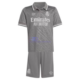 Camiseta Real Madrid 2024/2025 Tercera Equipación Niño Kit> Corte clásico.> El conjunto incluye camiseta y pantalón corto.> Pantalón corto con cintura elástica.> Tejido ligero, tacto sedoso, con efecto secado rápido y ligeramente elástico.> No se preocupe por la claridad de los logotipos de los clubs, marcas, nombres de los patrocina..