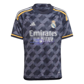 Camiseta Real Madrid 2023/2024 Segunda Equipación Niño Kit> Corte clásico.> El conjunto incluye camiseta y pantalón corto.> Pantalón corto con cintura elástica.> Tejido ligero, tacto sedoso, con efecto secado rápido y ligeramente elástico.> No se preocupe por la claridad de los logotipos de los clubs, marcas, nombres de los patrocina..